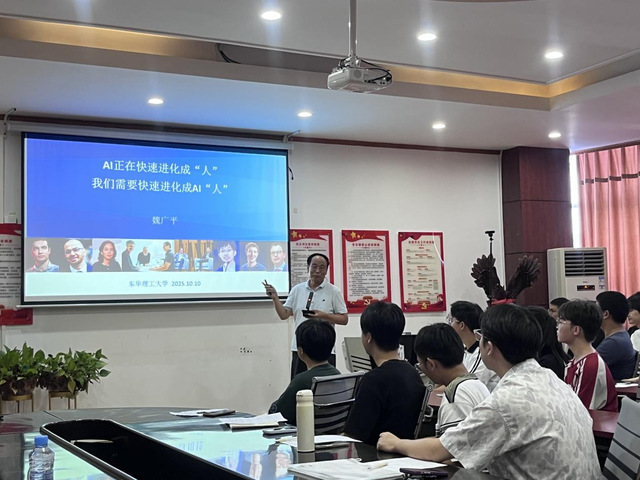 10月10日下午,软件学院在南昌校区软件楼316会议室成功举办研究生励志讲堂(第六期第六讲),本次讲座特邀国际人工智能领域著名专家魏广平教授作题为“AI 正在快速进化成‘人’,我们需要快速进化成 AI‘人’”的学术报告。学院师生踊跃参与,现场提问不断、研讨热烈,沉浸式感受人工智能前沿科技的独特魅力。