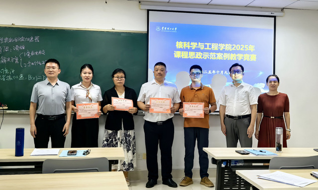 10月9日下午,核科学与工程学院2025年度课程思政示范案例教学竞赛在核工楼1216会议室举行,来自三个教学系的4名教师参赛。本次比赛以“思政铸魂,文化育人”为核心主题,紧扣学校推进课程思政建设的工作要求,协同推进核军工文化“进教材、进课堂、进头脑”。经过公平、公正、公开的专业评审,最终杜艳军获得特等奖、孙宇获得一等奖、耿彦霞和李洋获得二等奖。