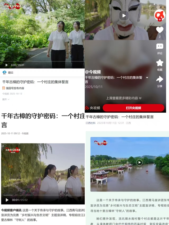 编者按:近日,江西青马宣讲团东华理工大学团队深入水南村开展生态文明实践活动,生动展现了青年学子将理论学习融入乡村振兴的积极探索。学习强国、央视频、今视频以及江西社科等主流媒体对此进行报道,引发社会广泛关注。现将报道内容转载如下: