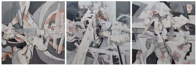 作品《崛起》聚焦新质生产力发展主题,从城市生活的具体形态中汲取灵感,提炼对象的本质特征与内在意趣,生动捕捉其鲜活的生命状态。作品运用抽象语言与简练色调,将蓬勃的生命力转化为强烈的视觉张力,勾勒出时代奋进的图景。
