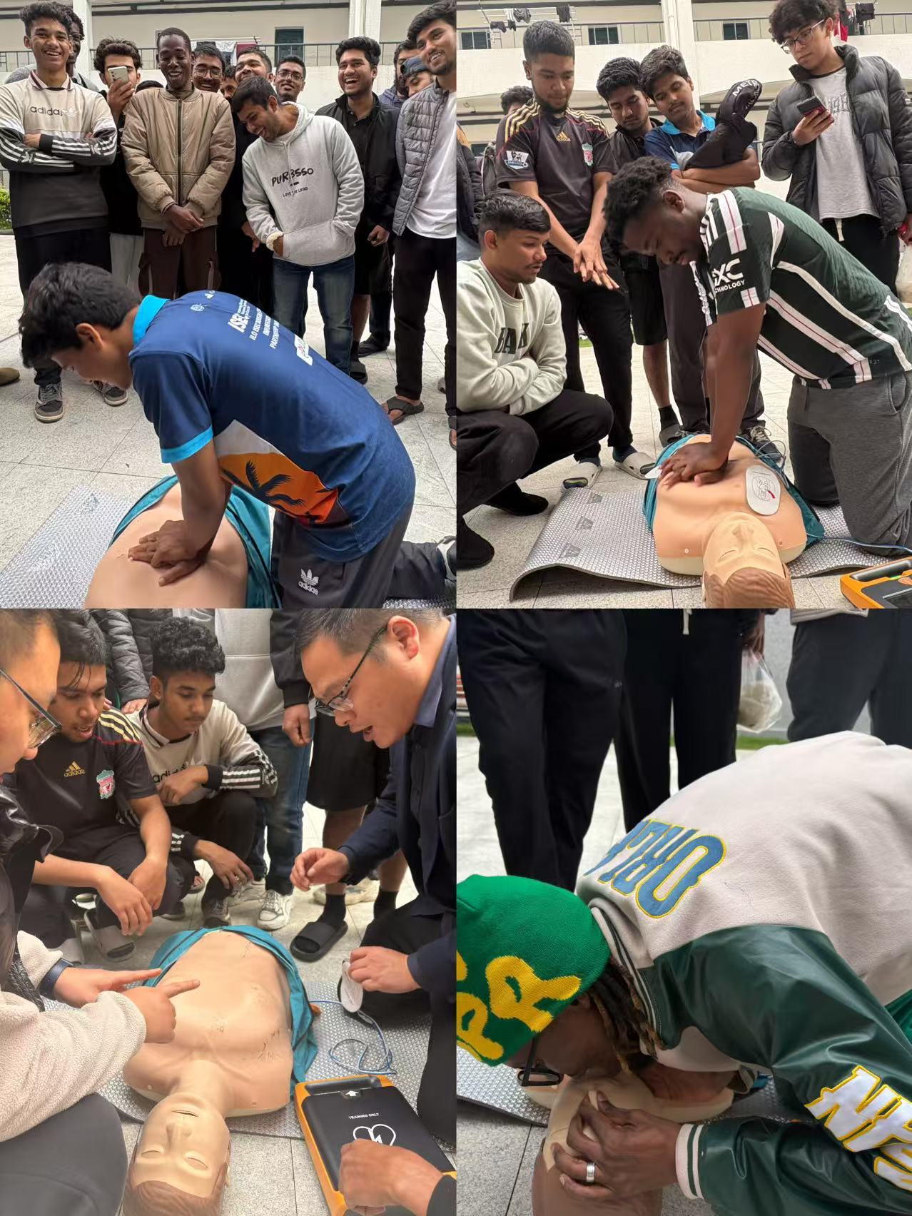 “这是我第一次亲手操作AED,步骤比想象中清晰简单,但在紧张情况下保持冷静并按流程操作至关重要。这次培训非常有用,让我感到更有能力在紧急情况下帮助他人。”一位来自非洲的留学生在活动后分享道。