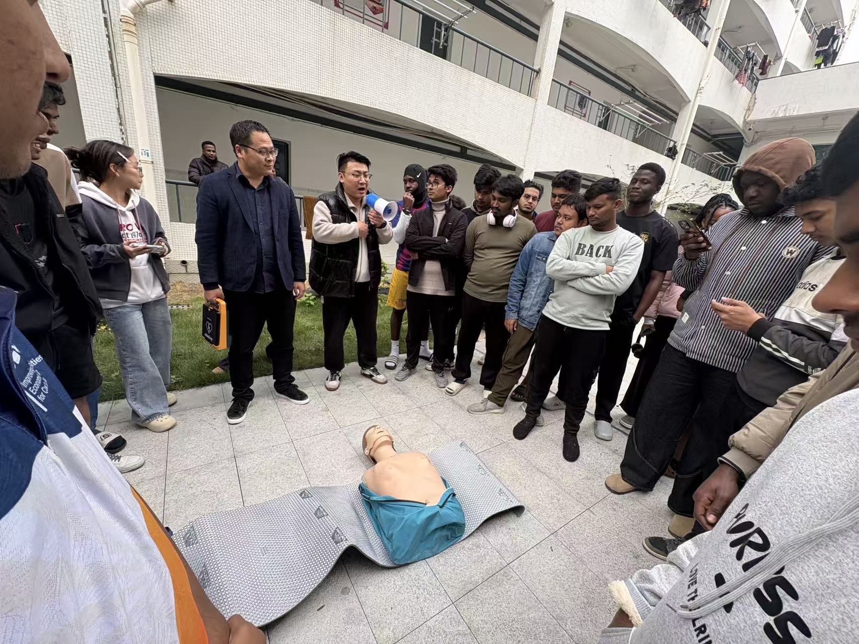 为进一步增强我校留学生的安全防范意识,普及应急救护知识,提升应对突发状况的自救互救能力,营造安全、健康的国际化校园环境,2025年11月11日下午,后勤保障处联合国际教育学院特邀培训讲师吕威,举办了一场生动而实用的心肺复苏术(CPR)与自动体外除颤器(AED)使用专项培训活动,共计60余名留学生参加。
