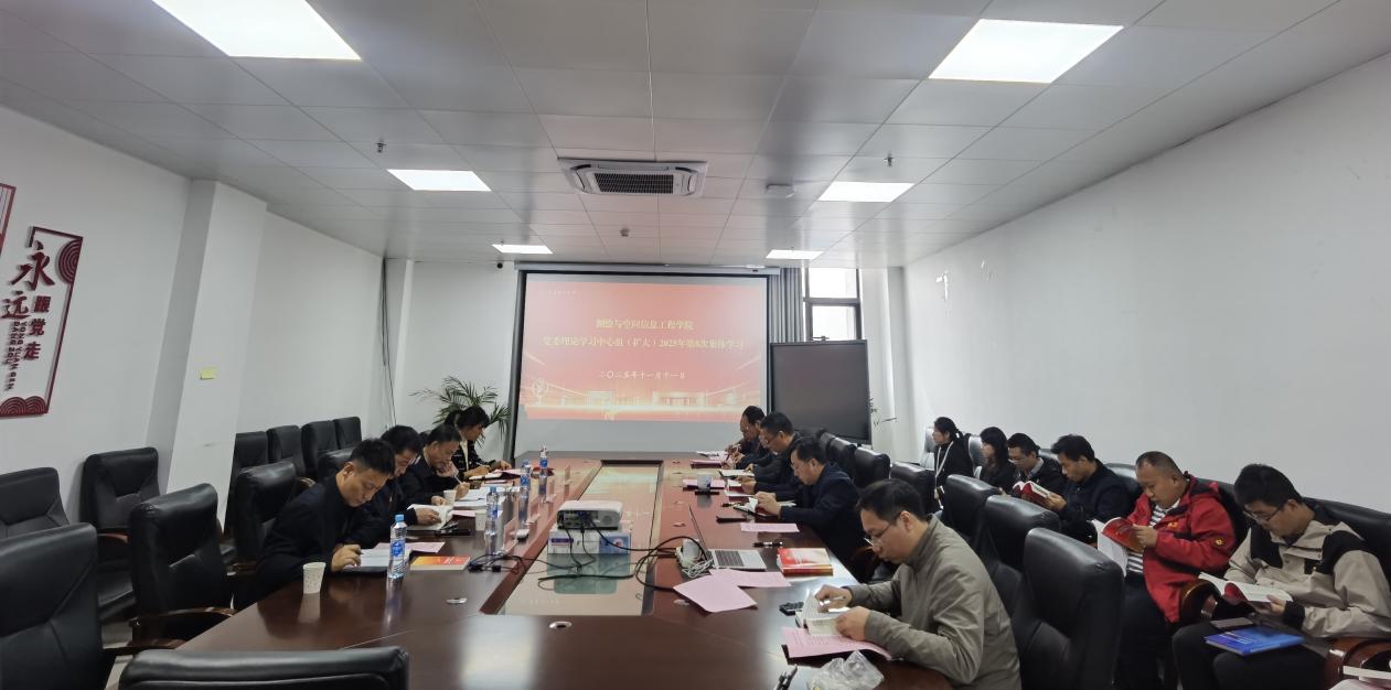 11月11日,测绘与空间信息工程学院组织2025年党委理论学习中心组第8次集中学习,深入学习贯彻党的二十届四中全会精神。校党委常委、统战部部长张立亭到场指导,地球物理与空间探测学院党委书记黄合湘陪同,测绘与空间信息工程学院党委书记鲁铁定主持会议,学院党委理论学习中心组成员参加会议。