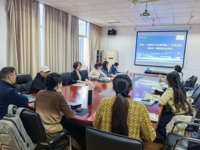 11月10日下午,东华理工大学马克思主义学院《思想道德与法治》(简称“德法”)课程组在测绘楼308会议室开展集体备课会,专题研讨党的二十届四中全会精神融入课程教学。会议由课程组负责人段艳丰主持,全体教师参加。