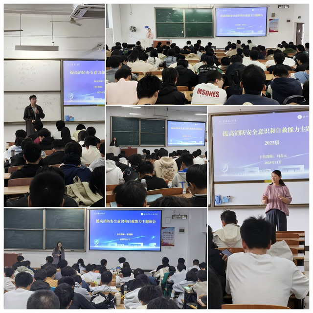 学院组织全体辅导员召开了“提高消防安全意识和自救能力”主题班会,通过图文并茂的PPT、火灾视频案例,深入浅出地讲解了火灾危害、成因及预防要点;现场演示灭火器等消防器材的正确使用方法,并让学生上台体验实际操作流程;模拟火灾场景,组织学生进行疏散逃生演练,提升应急反应和救护能力;设置互动问答环节,解答学生关于消防安全的疑问,引导鼓励学生积极寻找身边的安全隐患,学习消防安全知识,提高自救技能。
