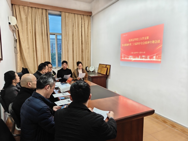 11月18日下午,民革东华理工大学支部在南昌校区广兰校园民革党员之家召开学习会议,专题学习中共二十届四中全会精神。支部主委查文华主持会议并领学《中国共产党第二十届中央委员会第四次全体会议公报》,支部在昌全体党员参加。