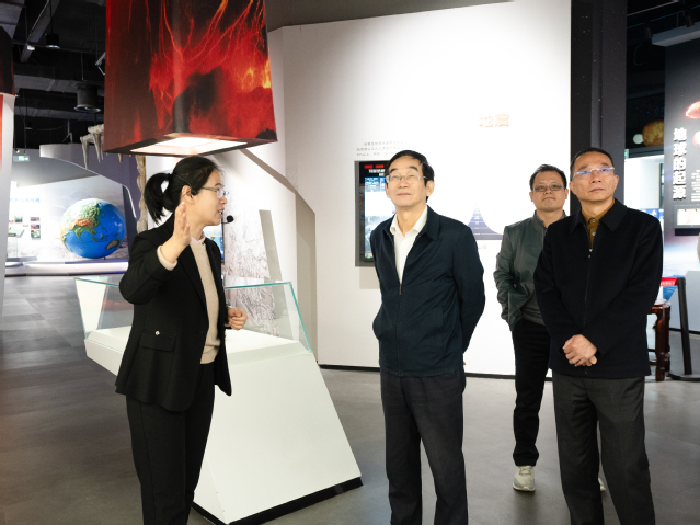 捐赠仪式前,黄代放一行实地调研了东华理工大学地质博物馆、校史陈列馆,深入了解学校的办学历史、科研进展与发展成就。