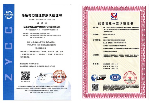 近日,江西东华理工大学勘察设计研究院有限公司成功完成绿色电力管理体系和能源管理体系认证工作,顺利通过权威机构审核,获得绿色电力管理体系认证与能源管理体系认证双项证书。