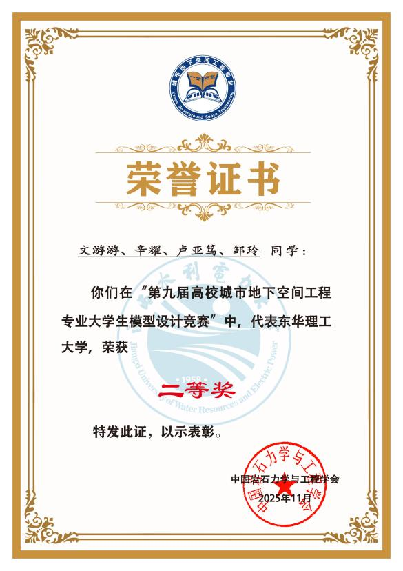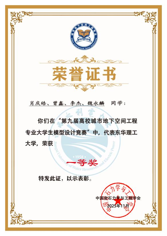近日,第九届高校城市地下空间工程专业大学生模型设计竞赛在江西南昌圆满落幕。东华理工大学土木与建筑工程学院选派的两支参赛队伍凭借扎实的专业功底、创新的设计理念和出色的实践能力,分别荣获一等奖和二等奖。
