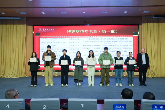 会议期间举行了优秀论文颁奖仪式。东华理工大学学子获特等奖8篇、一等奖11篇,学校获评优秀组织单位。