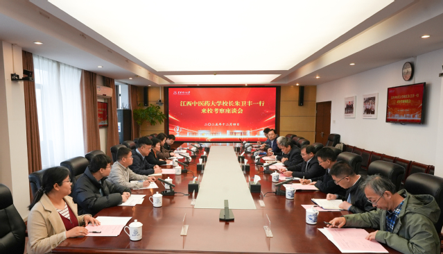 12月4日,江西中医药大学党委副书记、校长朱卫丰一行到东华理工大学调研交流。东华理工大学召开座谈会,校党委副书记、校长罗仙平出席,党委常委、副校长朱笃主持,原副校长、核技术研究院院长汤彬参加。