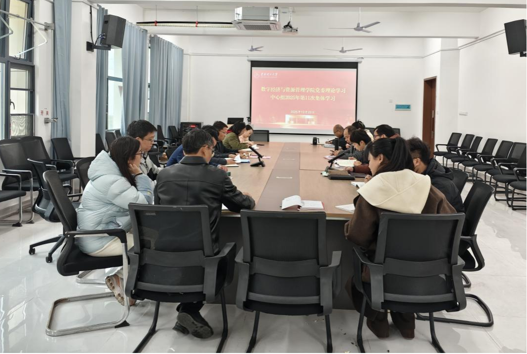 12月23日,数字经济与资源管理学院党委书记黄宝华主持召开2025年党委理论学习中心组第11次集体学习会,深入学习《中国共产党章程》。学院党委理论学习中心组成员和全体党支部书记参加。