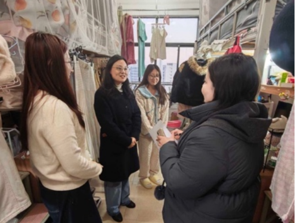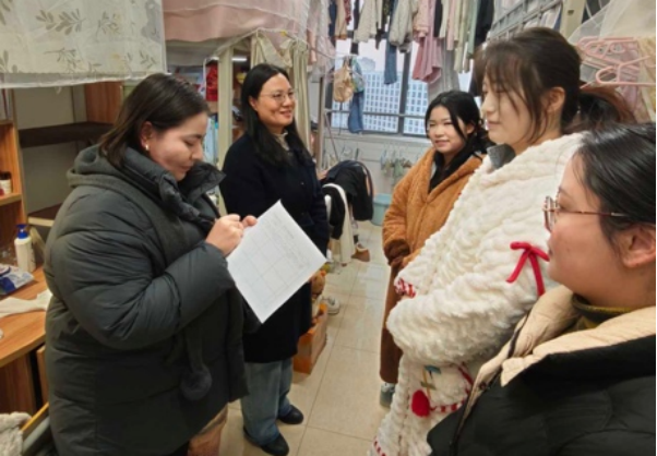 1月7日,东华理工大学马克思主义学院党委副书记欧阳霞带队,组织辅导员肖柯耶·阿力甫、班主任张晓伟一同深入学生宿舍,开展走访检查工作。