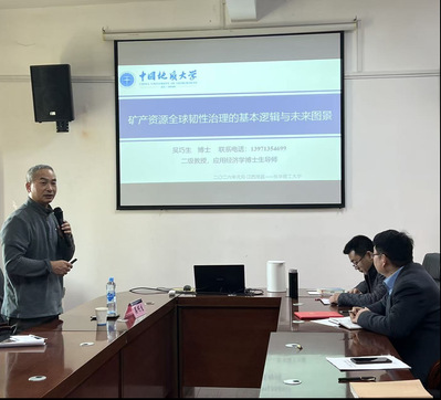 2026年1月9日,中国地质大学(武汉)二级教授、博士生导师、地大学者——应用经济学学科领军人才吴巧生教授,应邀莅临数字经济与资源管理学院开展学术交流活动,并带来题为《矿产资源全球韧性治理的基本逻辑与未来图景》的专题讲座。学院副院长赵玉、骨干教师代表及部分研究生参加了本次讲座。