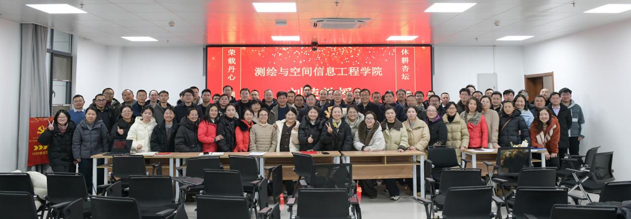 1月20日,测绘与空间信息工程学院刘荣教授荣休仪式在实验大楼1320举行。院党委领导班子、全体教职工参加了仪式,仪式由学院党委书记鲁铁定主持。