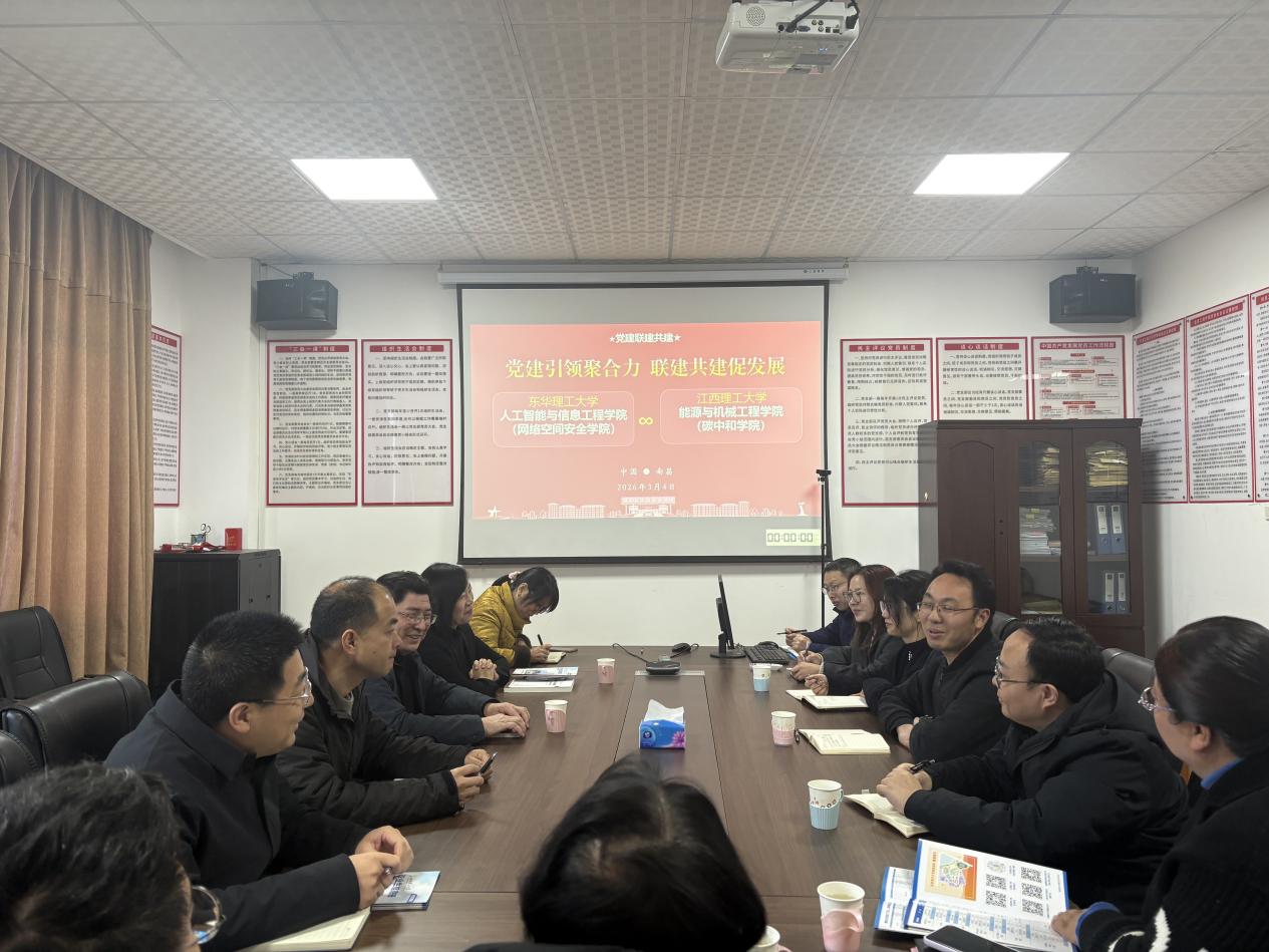 3月4日下午,学院党委与江西理工大学能源与机械工程学院党委联合开展“党建引领聚合力 联建共建促发展”主题党日活动。两院党委书记、组织员及部分党支部书记共同参加活动。我院研究生第一党支部作为“全省研究生样板党支部”培育创建单位,与江西理工大学能源与机械工程学院研究生党支部(全省党建样板支部)依托此次活动平台,开启了联建共建的初步探索。