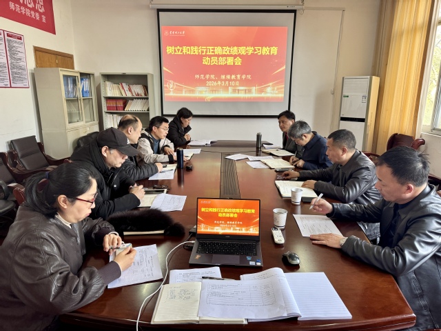 3月10日,师范学院、继续教育学院召开树立和践行正确政绩观学习教育动员部署会,深入学习贯彻习近平总书记关于树立和践行正确政绩观学习教育的重要讲话和重要指示精神,部署安排学院学习教育有关工作。学院党委书记吴贤义作动员部署。