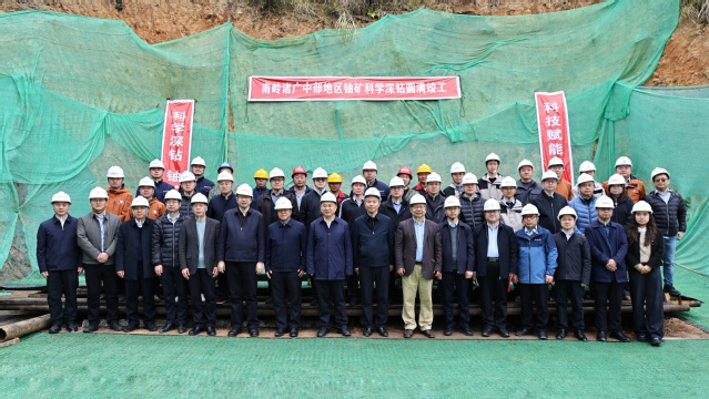 据悉,该项目在国家原子能机构核技术研发重大项目支持下,终孔深度2010.6米,为目前我国花岗岩型铀矿科学钻探最深孔。该科学深钻工程的成功实施,验证了热点铀成矿作用理论-多期次岩浆活动中心和构造叠加对铀成矿的控制作用,刻画了深钻场址区三维地质结构,校验并提高了勘查技术探测的深度和精度,揭示了深部铀成矿环境,发现了厚富工业铀矿层,指明了花岗岩型铀矿新的找矿方向,为进一步科学研究和找矿评价提供了坚实的工程实践基础,对推动成矿理论创新、拓展找矿新空间、实现找矿新突破均具有重大意义。(图/文 钟福军、郭熙宝、董旭涵)