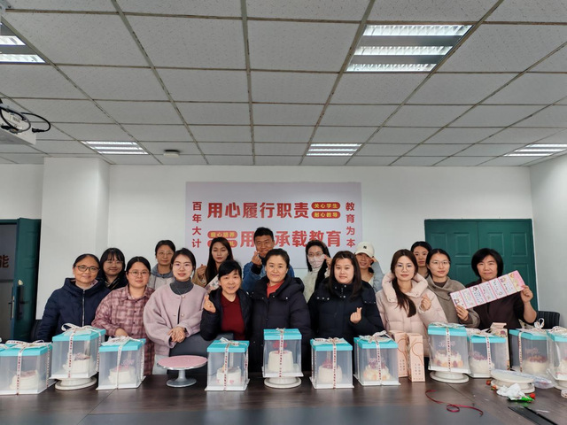 在抚州校区,活动以“指尖传香,感受美好—— 解锁专属甜蜜时光”为主题,开展蛋糕DIY体验活动。现场邀请专业烘焙老师围绕蛋糕装饰技巧、色彩搭配与食材选用等内容进行细致讲解与示范。在老师的指导下,女教职工们充分发挥创意,将原本朴素的蛋糕胚点缀成风格各异、独具巧思的甜点作品。大家一边制作,一边交流心得,现场气氛轻松愉悦。活动尾声,大家与自制的蛋糕作品合影留念,在甜蜜创作的过程中感受节日的温馨与仪式感。