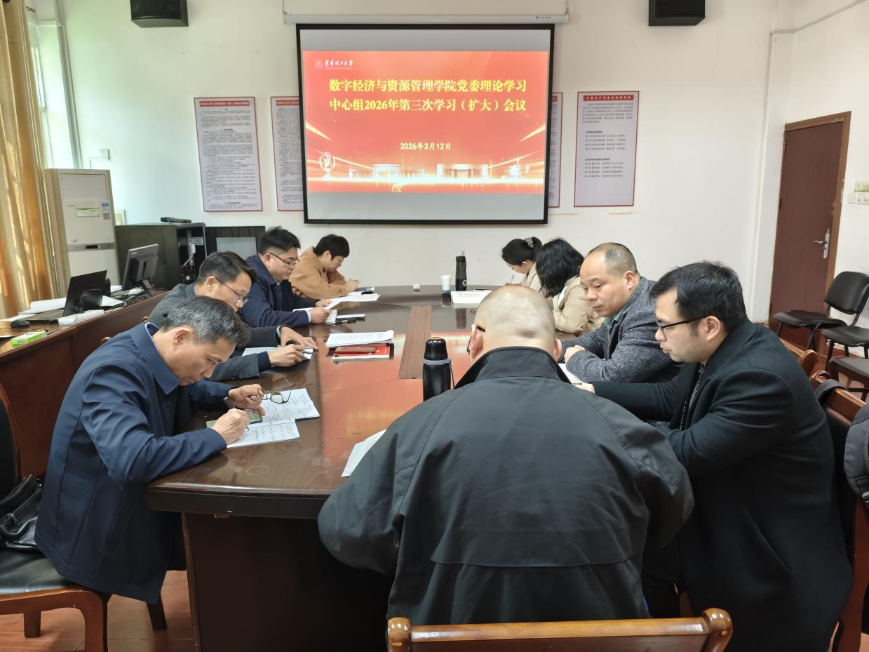 2026年3月12日,数字经济与资源管理学院党委书记黄宝华主持召开2026年党委理论学习中心组第3次集体学习会,深入学习习近平总书记关于国家安全的重要论述、关于安全生产的重要论述。学院党委理论学习中心组成员和全体党支部书记参加学习。