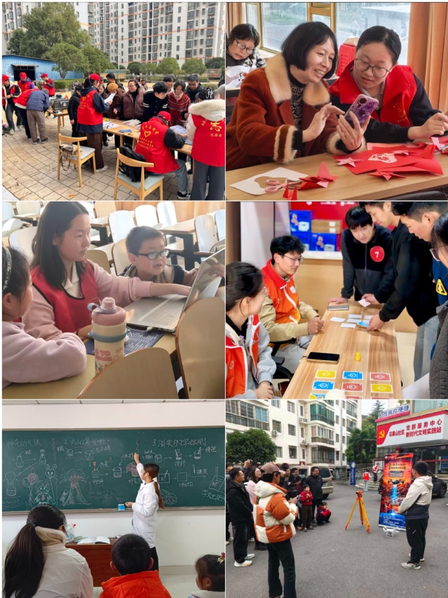 各学院发挥学科优势,将志愿服务与专业实践、生态环保、精神传承深度融合。水资源与环境工程学院、电子与电气工程学院师生走进南昌县澄碧湖社区,为居民检修小家电、普及安全用电知识,并携带专业设备对湖水进行现场检测、沿湖清理垃圾;人工智能与信息工程学院师生走进青雨社区,向老年群体普及AI反诈知识;软件学院师生在临川区第十小学开展少儿编程启蒙教育;核科学与工程学院师生创新采用定向越野打卡形式,将核科普与植绿护绿相结合;测绘与空间信息工程学院师生前往新建区花果山小区开展无人机宣讲活动;化学与材料学院师生走进凤凰洲社区公园清理河岸杂物,并组织《雷锋日记》围读会;理学院师生开展“废品换绿植”活动;土木与建筑学院前往秋水广场开展赣江美化行动,并开展雷锋主题井盖涂鸦创作;国防教育学院走进金巢实验学校雷锋馆开展沉浸式研学。