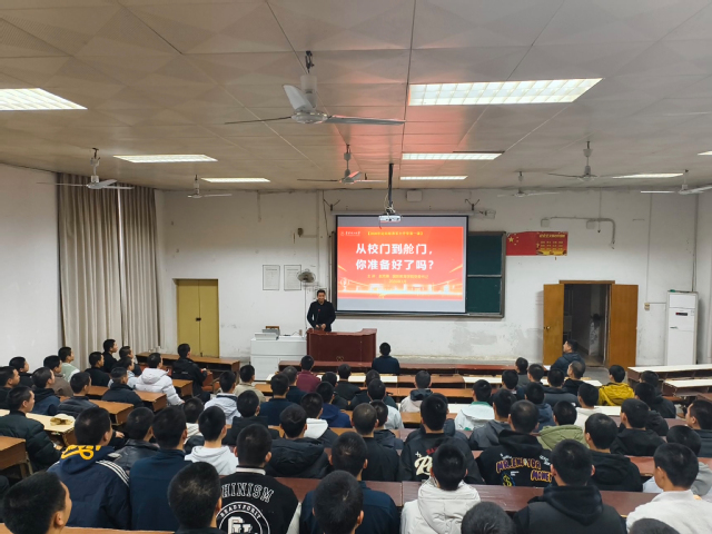 32416时,国防教育学院党委书记赵克锋在抚州校区学府校园信工楼阶六教室为定向培养军士作题为“从校门到舱门,你准备好了吗”的开学第一课专题讲座。