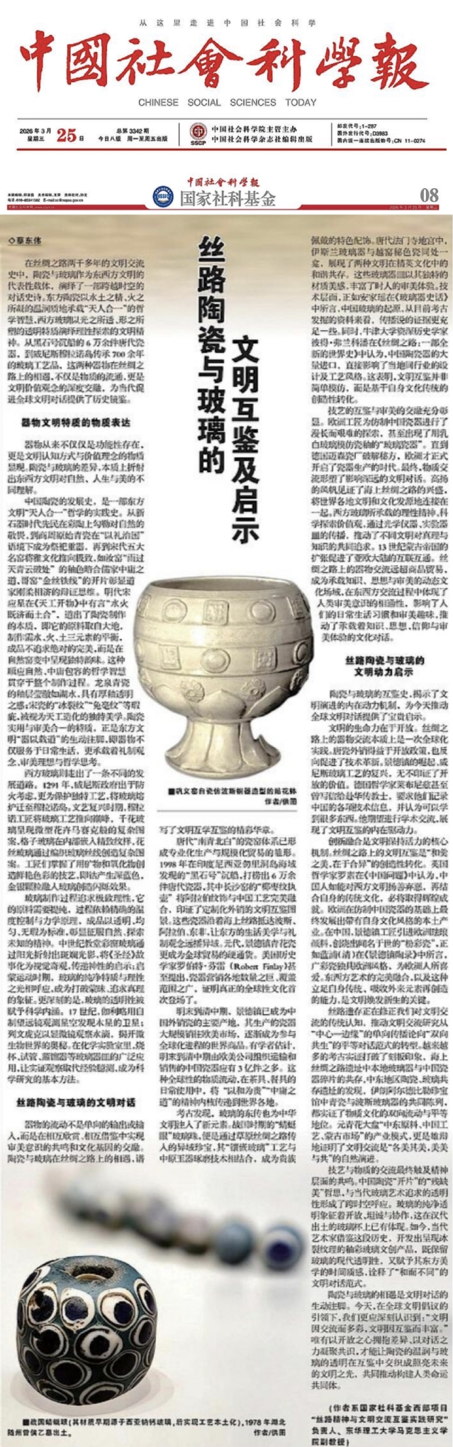 【中国社会科学报】丝路陶瓷与玻璃的文明互鉴及启示
