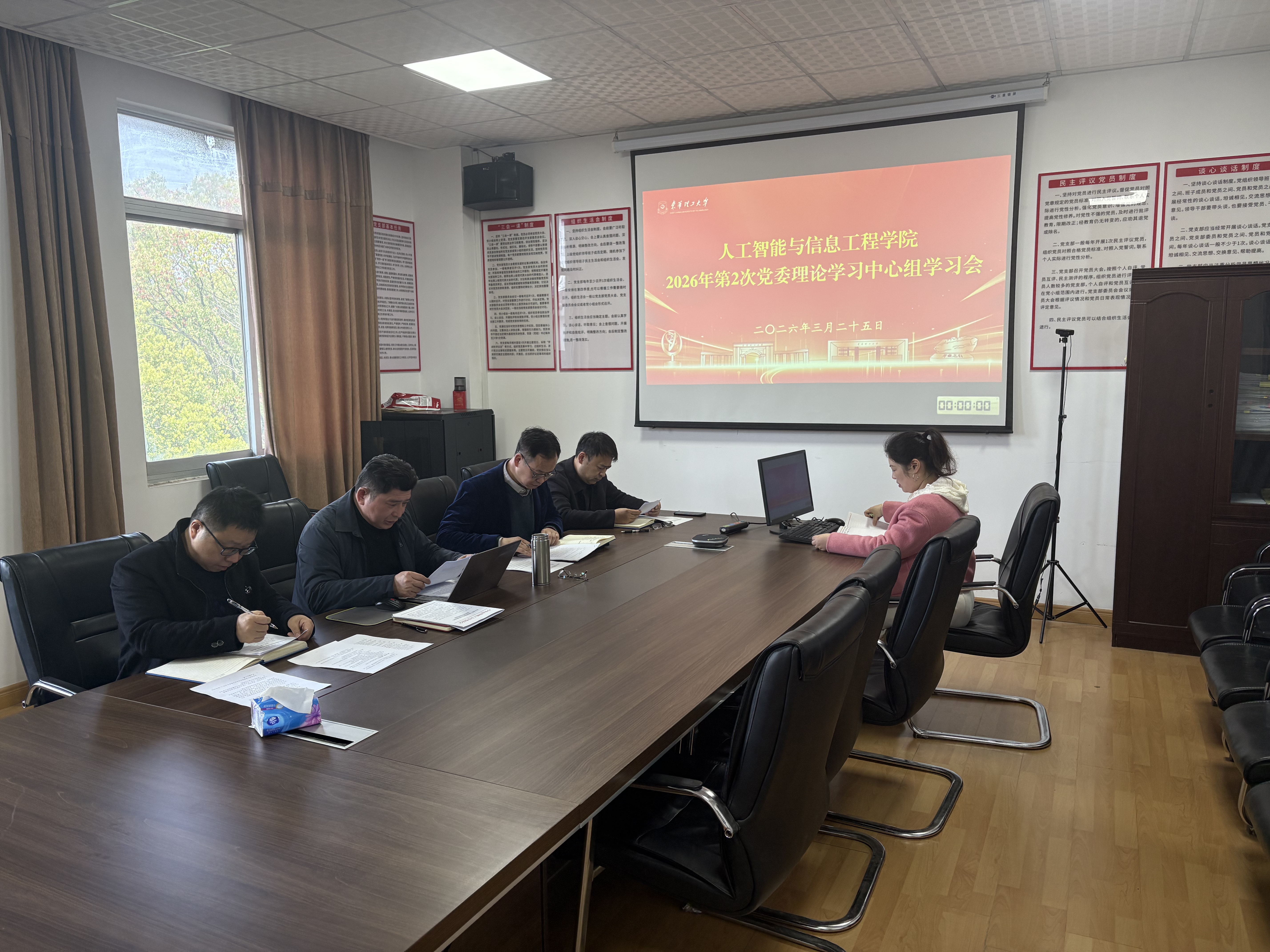 325日,人工智能与信息工程学院党委理论学习中心组在软件楼313会议室举行2026年第2次集体学习会议传达学习贯彻全国两会精神二十届中央纪委五次全会精神学院党委书记王平风主持会议,党委理论学习中心组成员参加学习。