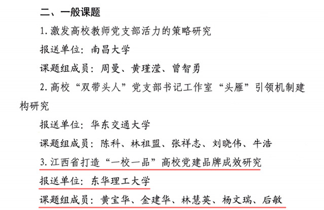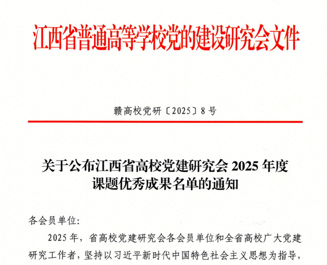 近日,江西省普通高等学校党的建设研究会公布了2025年度课题优秀成果名单,东华理工大学数字经济与资源管理学院报送的《江西省打造“一校一品”高校党建品牌成效研究》入选优秀一般课题(全省高校仅26项)。