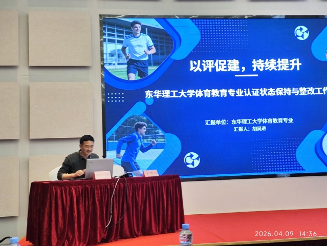 教学质量监测与评估中心选派体育与艺术学院体育教育系主任胡吴进教授及4名教师参训。培训期间,胡教授受邀作《以评促建,持续提升——东华理工大学体育教育专业认证状态保持与整改工作汇报》主题交流,系统分享专业认证整改、内涵建设、质量提升等工作经验与实践成果,获得与会领导及同仁一致好评,充分展现了我校专业建设成效。