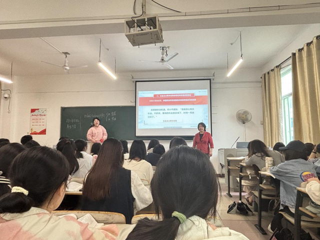 张飞雁率先围绕社会主义初级阶段理论系统讲授社会主义初级阶段的科学内涵历史定位学生厘清理论背景与发展阶段的基本脉络。韩冰接续讲解深入解读“社会主义的根本任务是发展生产力这一论断结合经济、政治、国际形势分析了中国必须坚持独立自主、依靠自身发展的重要性,并将理论与新时代实践相结合,引导学生树立勤学本领、科技报国的意识