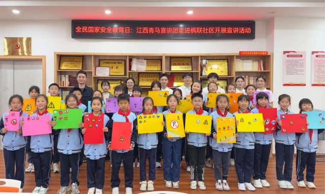 4月15日,在第十一个全民国家安全教育日,江西青马宣讲团东华理工大学团队走进南昌经开区蛟桥街道枫联社区,结合“统筹发展和安全 护航‘十五五’新征程”主题,面向昌北二小学生开展了安全教育宣讲活动。