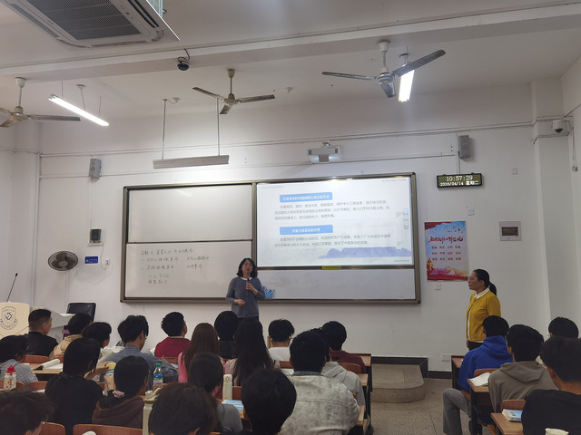同学们纷纷表示,双师同堂教学模式实现了历史叙事与理论阐释的优势互补,两位教师各展所长、相得益彰,让历史更可感、理论更易懂。谭辉、陈鹭婷两位同学谈到,这种创新教学形式营造了活跃的课堂氛围,增强了课堂的吸引力和思辨性,有效引导学生从“被动倾听”转变为“主动探究”。(图/谭辉 文/罗洁)