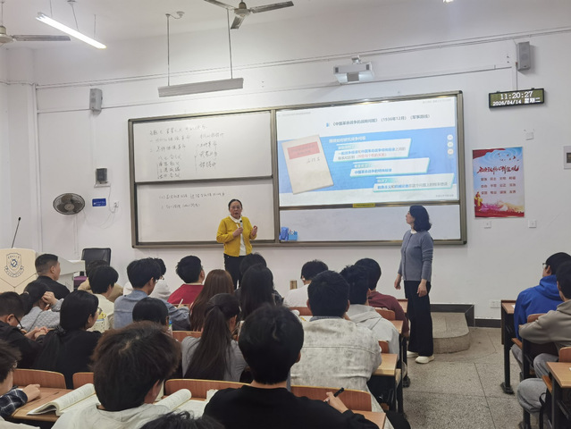 课堂上,两位教师分工协作、互为支撑。罗洁系统梳理了以毛泽东同志为主要代表的中国共产党人开辟“农村包围城市、武装夺取政权”革命新道路的艰辛历程,深入解读“工农武装割据”思想的形成与实践,用鲜活史实还原历史抉择的必然性。危琦立足理论视角,以《实践论》《矛盾论》为核心,深刻阐释理论联系实际的重大意义,剖析教条主义的深刻危害,将辩证唯物主义与历史唯物主义贯穿历史叙事之中,生动诠释马克思主义的科学性、人民性、实践性、发展性的鲜明品格。