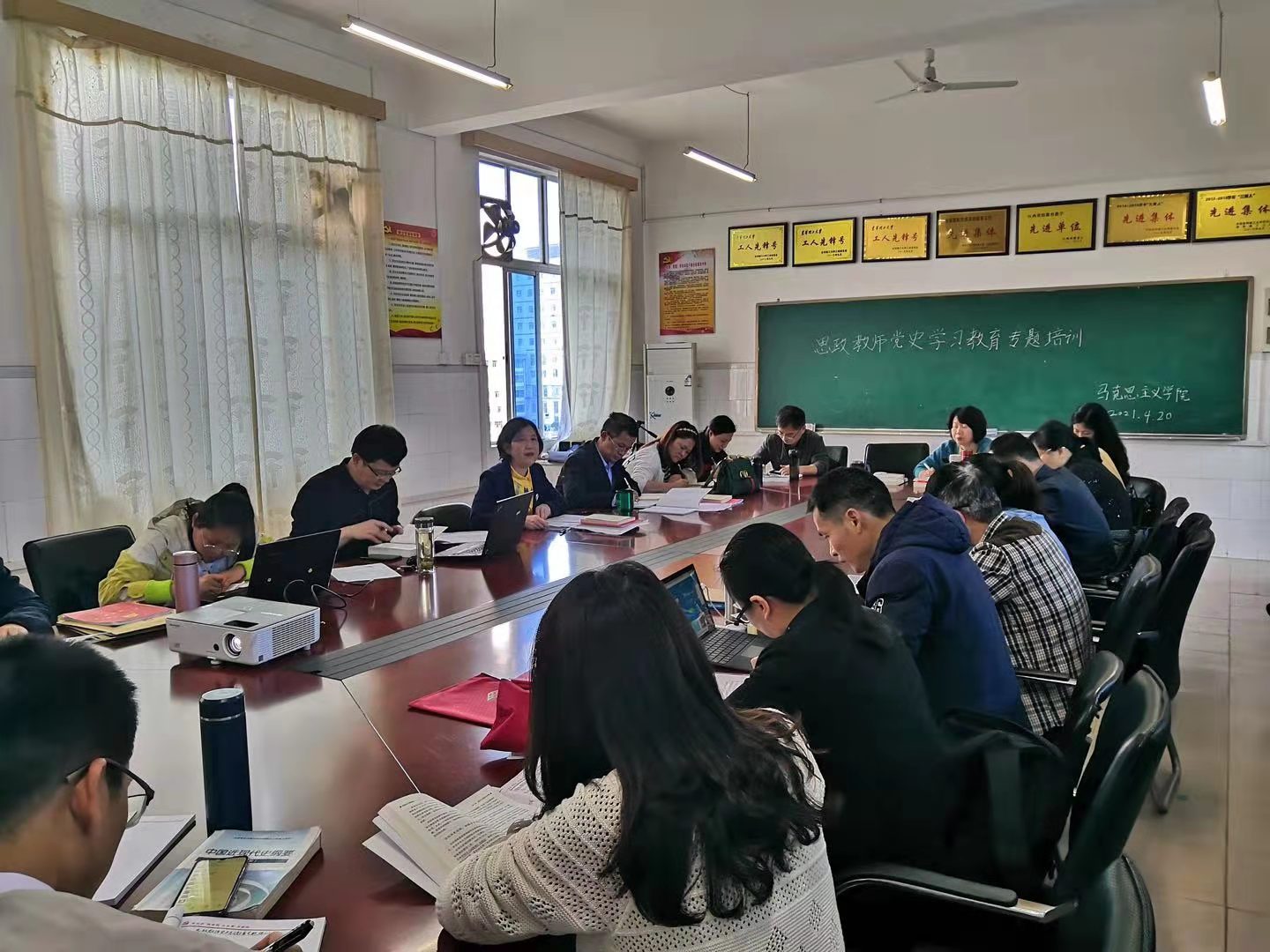 为推动党史学习教育扎实开展,4月20日下午,马克思主义学院在测绘楼505会议室召开思政课教师党史学习教育专题培训会,会议由学院党总支书记华启和主持,全体思政课教师参加了会议。