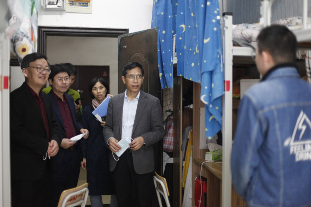 为落实勤为学生办实事,勇开学生工作新局面,进一步推进党史学习教育学实学深,4月26日上午,软件学院、信息工程学院党委书记许亚男、院长何月顺、党委副书记许志文、学团办主任徐春金和刘锦春及相关辅导员一起走访毕业生宿舍看望毕业班同学,深入了解和解决学生的“急难愁盼”问题。