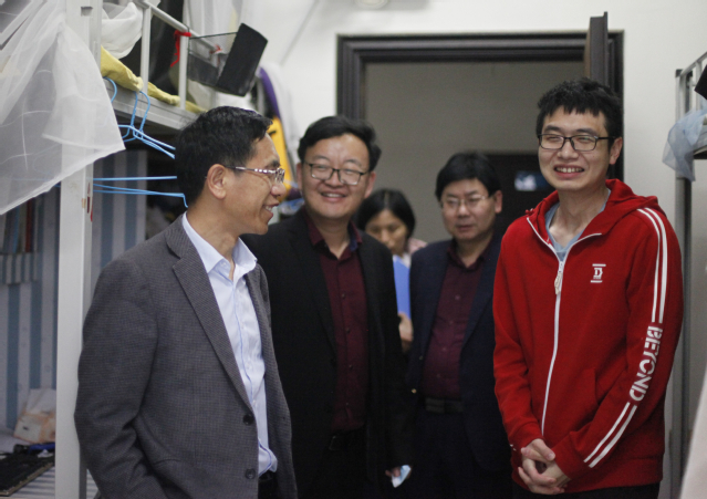 院领导与毕业生进行了面对面、心贴心的交流。在走访七栋宿舍的时候,毕业生在与学院老师的聊天中纷纷说出了自己的困惑,各位领导耐心解答。对于部分同学在就业问题上有着不少担忧,院领导表示一直都密切关注学生就业情况,同时告诉同学们要转变态度、调整观念,对未来充满信心,先就业再择业,多积累经验,厚积而薄发,走上工作岗位或深造后要更加努力,报效社会。对于已考取研究生的同学,院领导鼓励他们认真利用好这段时间加强专业学习,提高自己的专业水平,为后面读研打下坚实的基础。走访期间,院领导还嘱咐同学们要抓紧时间做好毕业设计和毕业论文,有困难和疑惑多和指导老师联系和询问,为毕业答辩做好充分准备,同时还仔细询问了毕业生的宿舍生活情况,督促同学们要注意安全,认真维持好宿舍卫生。