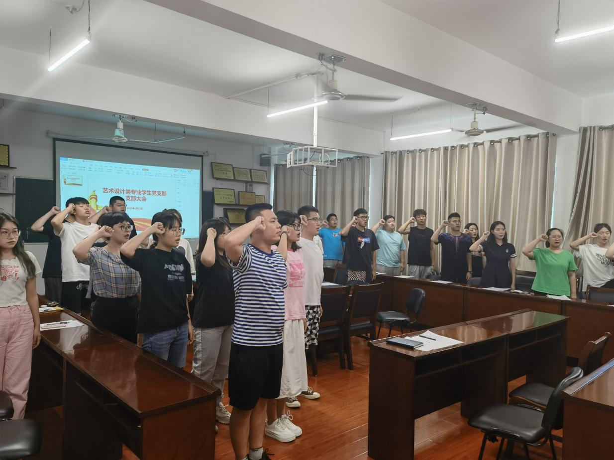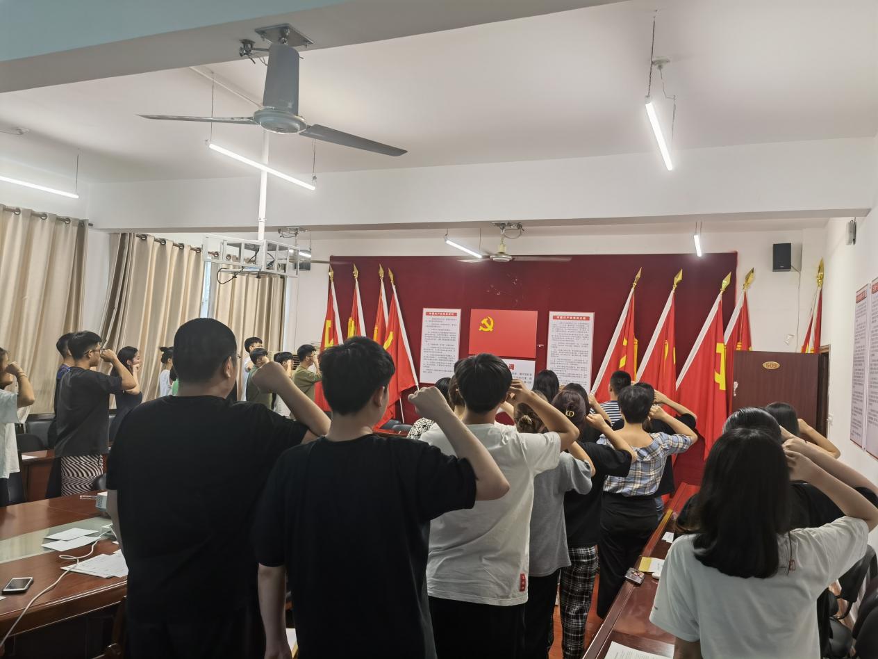 2021年6月21日下午4点,东华理工大学艺术学院艺术设计类专业学生党支部新党员“入党宣誓仪式”在艺术楼509党员活动室隆重举行。支部书记周露,副书记程亮、全体学生老党员重温了入党誓词。