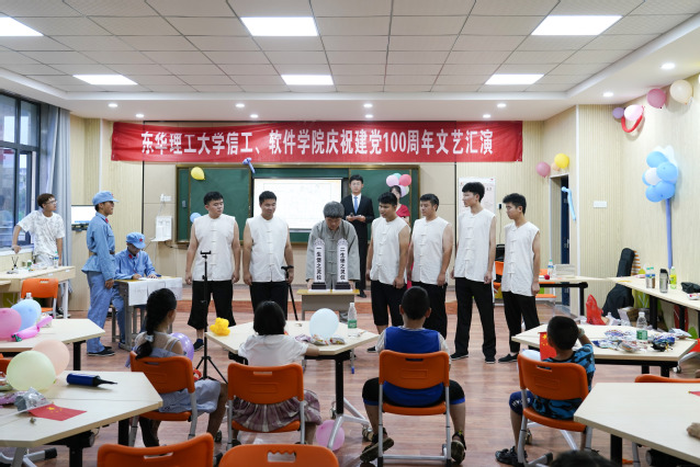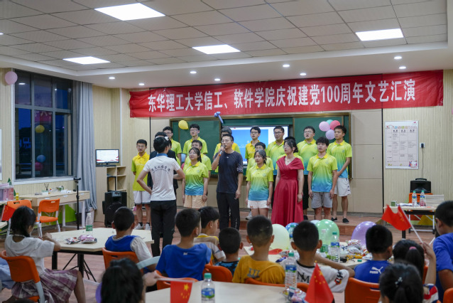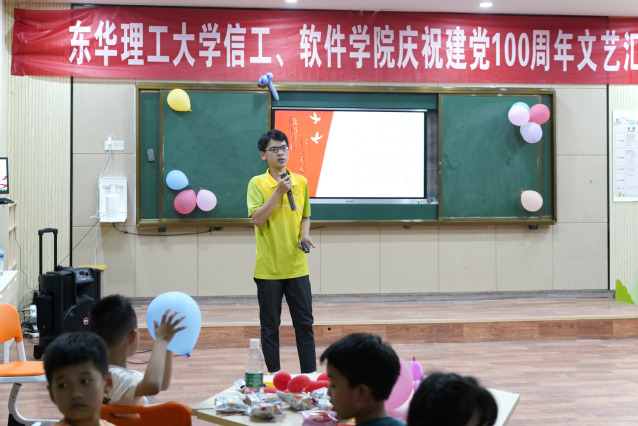为庆祝中国共产党成立100周年,回顾党的光辉历程,讴歌党的丰功伟绩,7月5日晚,软件学院在庐山市温泉中心小学开展了庆祝中国共产党成立100周年暨“三下乡”暑期社会实践文艺汇演。