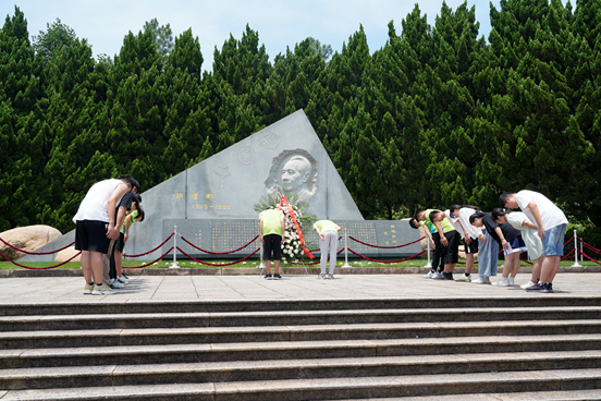 在讲解员的带领下,队员们怀着无比崇高的敬意进入陵园,走过象征着胡耀邦同志73年人生曲折道路的73级石阶,来到胡耀邦同志墓前,队员们默哀致敬,向胡耀邦同志敬献花圈,肃立三鞠躬,以表达对这位伟大的无产阶级革命家、政治家的深切怀念和崇高的敬意。