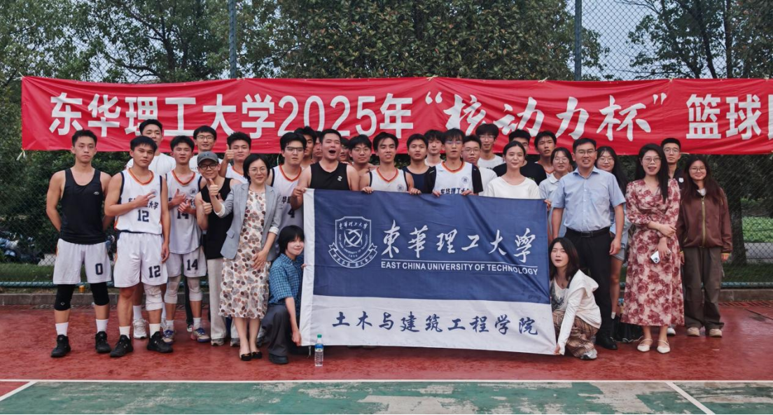近日,在东华理工大学2025年“核动力杯”篮球赛中,土木与建筑工程学院代表队发挥出色,展现了顽强拼搏的体育精神。经过激烈角逐,我院男子篮球队荣获亚军,女子篮球队取得了第六名的优异成绩。学院党委书记秦华,党委副书记黄磊到场观赛并同选手合影。