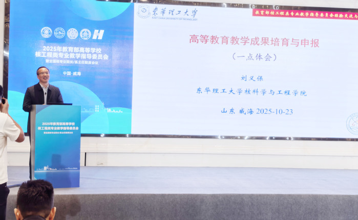 10月22-24日,由教育部高等学校核工程类专业教学指导委员会主办,哈尔滨工程大学承办的2025年教育部高等学校核工程类专业教学指导委员会暨全国核专业院长/系主任联席会议在山东威海召开。东华理工大学党委副书记夏菲、核科学与工程学院党委书记张怀强、核学科专业带头人刘义保教授等参加了此次会议,刘义保教授受邀作了题为《高等教育教学成果培育与申报的一些体会》的大会报告。