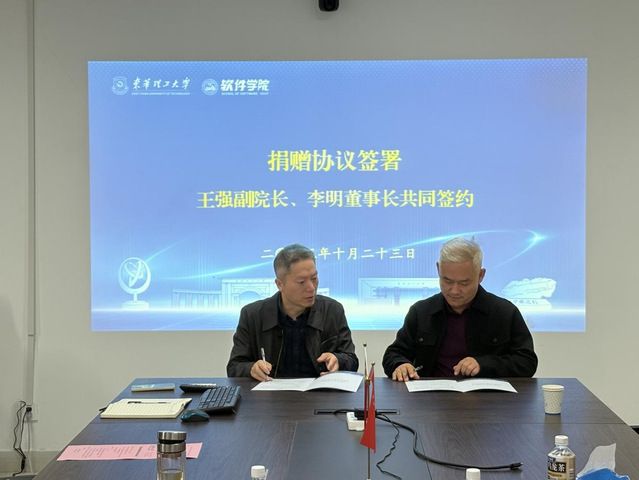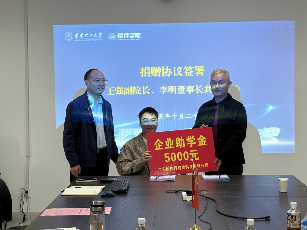2025年10月23日,广东助你行智能科技有限公司捐赠签约仪式,在国防科技楼1114会议室举行。广东助你行智能科技有限公司董事长李明、总经理李红,东莞佰和生物科技有限公司董事长何勇,软件学院党委书记江雁飞、院长李祥、副院长王强及师生代表共同见证仪式。