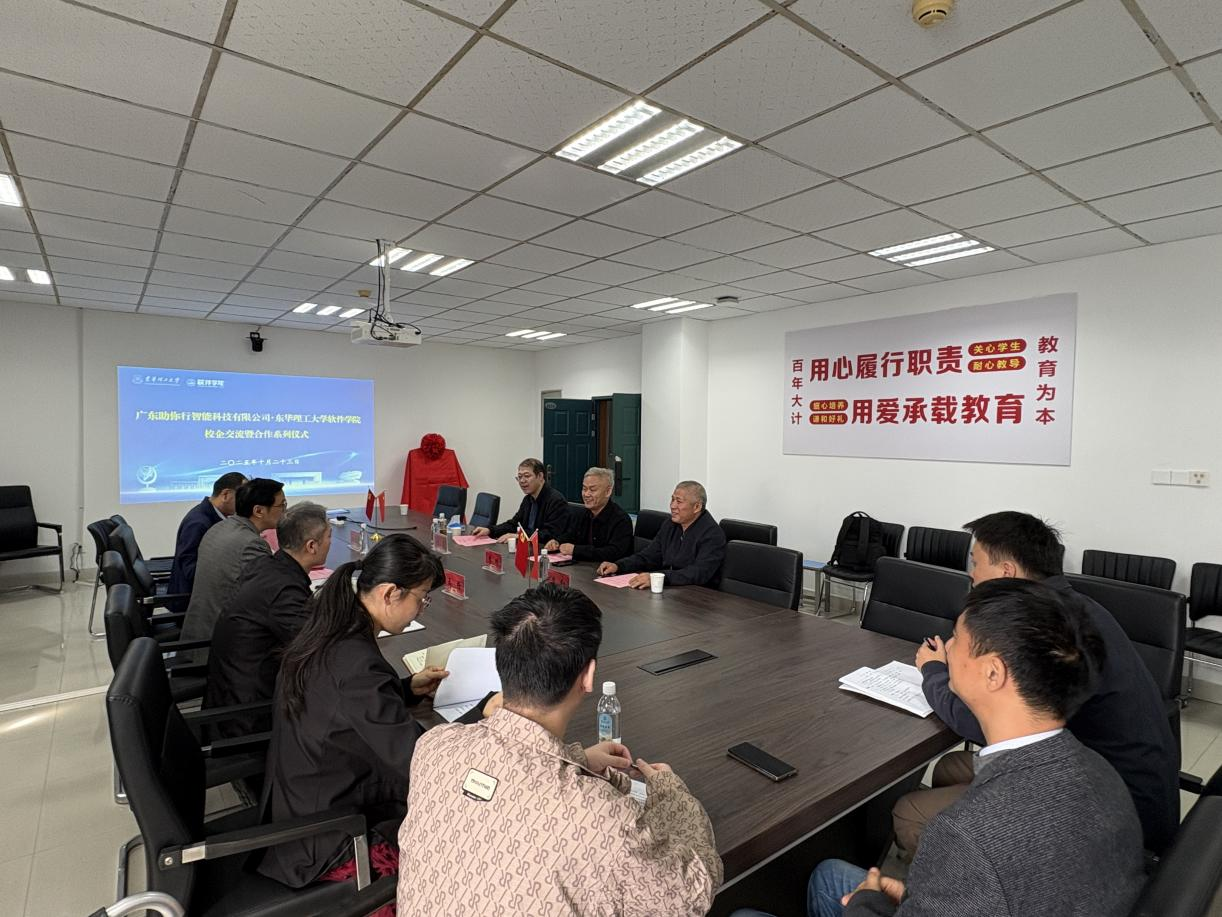 2025年10月23日,学院与广东助你行智能科技有限公司校企交流暨合作揭牌会议,在国防科技楼1114会议室隆重举行。广东助你行智能科技有限公司董事长李明、总经理李红,东莞佰和生物科技有限公司董事长何勇,软件学院党委书记江雁飞、院长李祥、副院长王强及各系部/科室负责人出席会议,会议由李祥主持。
