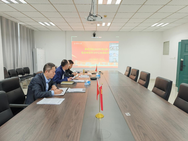 11月3日,软件学院召开2025年第13次党委理论学习中心组集体学习会,专题学习党的二十届四中全会精神,传达学习全省领导干部会议精神。会议以视频形式进行,学院党委书记江雁飞主持会议,就做好学院学习贯彻工作提出具体要求,学院党委委员、副院长王强、庞振宇作交流发言。