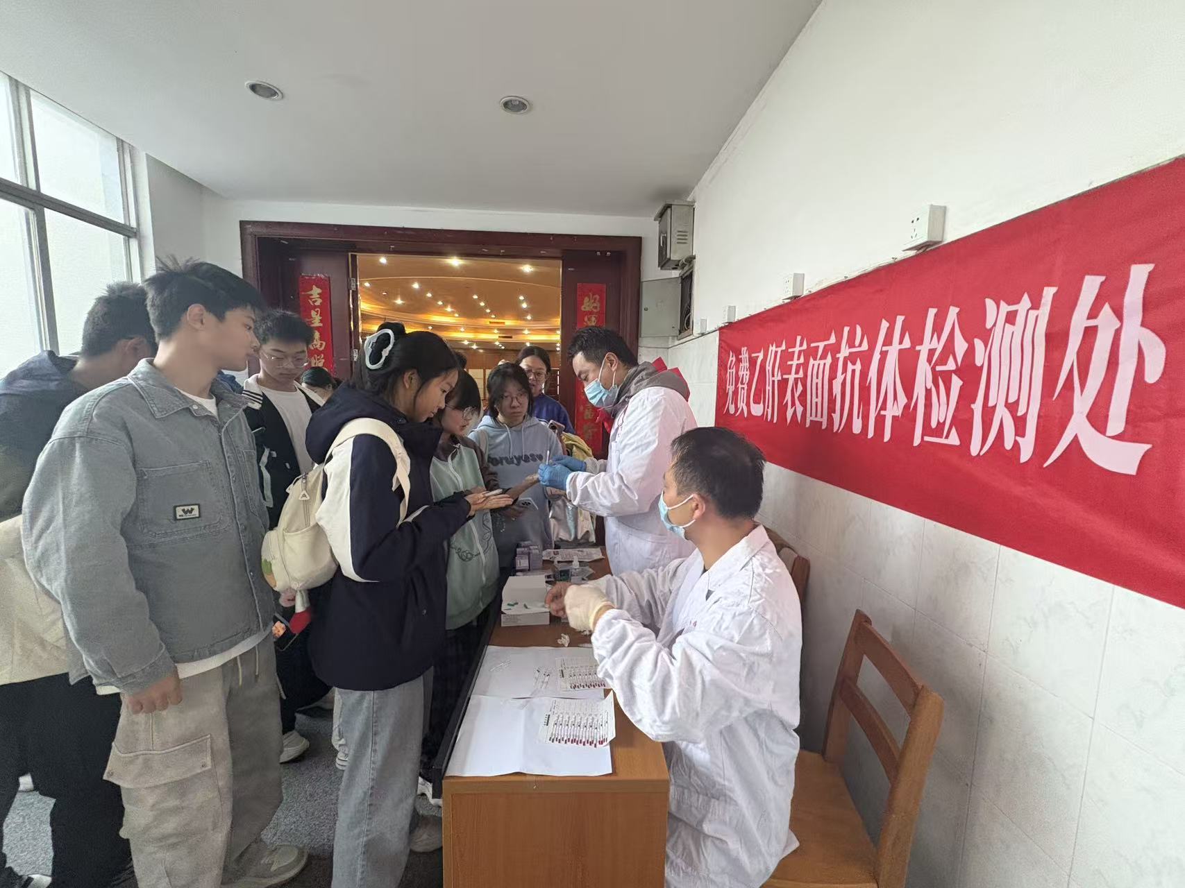 为促进防治知识转化为健康行动,会场外同步设置了“乙肝免费义诊服务点”,为新生提供专业健康咨询与乙肝表面抗体快速检测。同学们积极响应、有序参与,通过检测及时了解自身免疫水平,为后续疫苗补种提供科学依据,真正实现“心中有数,预防有方”。该务实举措受到广泛好评,将活动推向高潮。