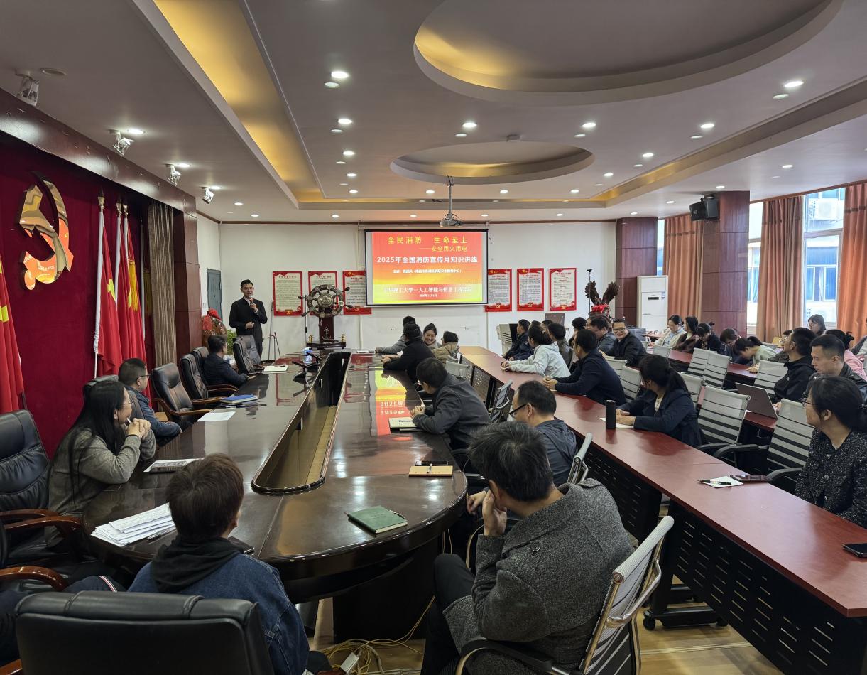为响应2025年全国消防宣传月“全民消防、生命至上——安全用火用电”主题号召,近日,人工智能与信息工程学院特邀南昌市消联安全服务中心黄潇风教官,为全院教职工开展消防安全专题讲座。