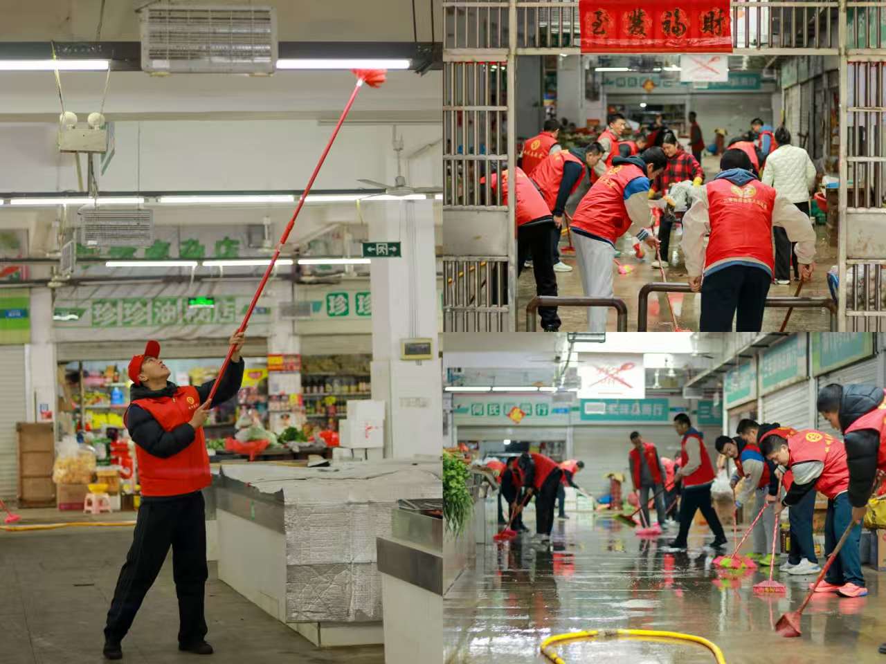 活动中,志愿者们分成若干小组,各司其职,迅速投入清扫工作。大家运用扫帚、长杆清洁刷等工具,对市场地面、摊位通道及高空区域进行了彻底清理。针对顽固污渍,志愿者们采用专项方法进行处理,随后进行冲刷与精细化擦拭,确保了清洁工作的全面与深入。