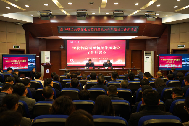 12月29日上午,东华理工大学在南昌、抚州校区以视频同步的方式召开深化校院两级机关作风建设工作部署会。校党委书记张福庆作动员讲话,校党委副书记、校长罗仙平主持。在家校党政领导班子成员、全体处级干部及校院两级机关科级干部共计450余人参加。