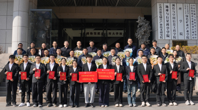 1月8日,东华理工大学在南昌广兰校园举行第九届“龚健雅奖助学金”颁奖典礼。1978级杰出校友、中国科学院院士龚健雅,校党委书记张福庆,1984级校友、湖南博达方仁工程项目管理有限公司董事长冯春翔,1995级校友、“龚健雅奖助学金”管理委员会监事长张建国出席。校党委常委、副校长邓居智主持。